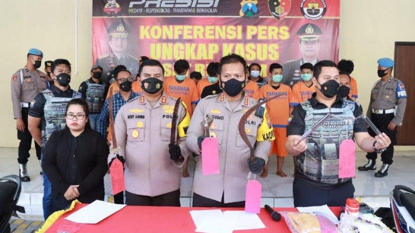 Belasan tersangka tersebut diduga telah menganiaya korban MT (21) yang berasal dari kelompok perguruan lain pada Kamis (5/1) dini hari.