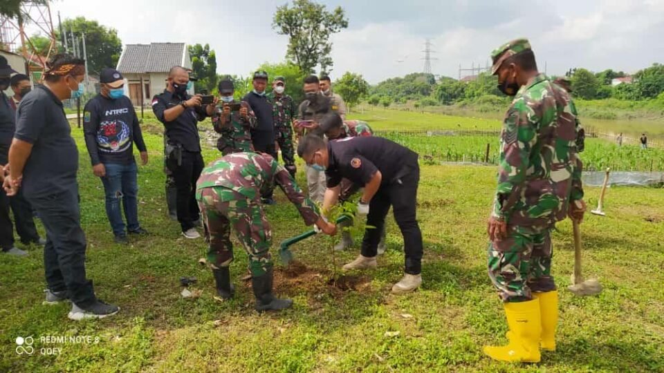 SPcom KARAWANG – Komunitas 234 SC Subregwil Klari bersama Satgas Citarum Harum Sektor 19 melaksanakan penanaman pohon di bantaran sungai Citarum, di Dusun Wanajaya, Desa Warung Bambu, Karawang Timur, Minggu (7/11).