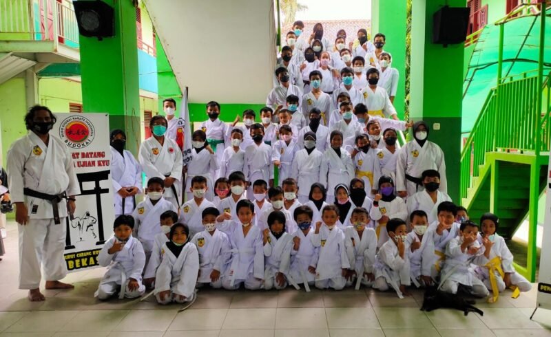 SPcom BEKASI – Sebanyak 54 karateka Perguruan Budo Kyokai Karate Indonesai (Budokai) ikut dalam ujian kenaikkan sabuk, di Kabupaten Bekasi, Minggu (13/2/2022).