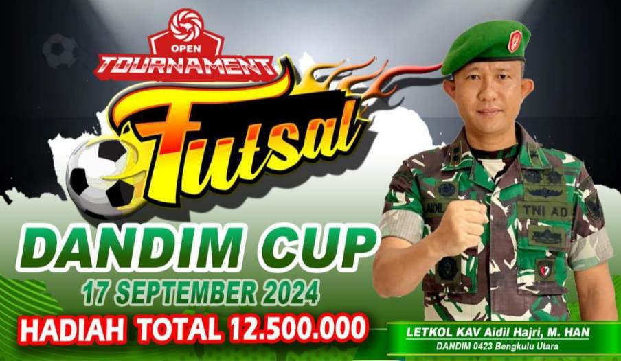 SPcom BENGKULU – Sebanyak 78 tim futsal ikut serta dalam Turnamen Futsal Dandim Cup yang diselenggarakan Kodim 0423/BU. Kegiatan ini merupakan rangkaian menyambut HUT ke-79 TNI.