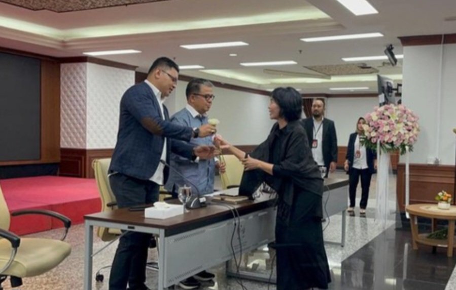Usai pembacaan pernyataan sikap itu, diwakilkan oleh Omie Komariah Madjid, Istri Nurcholish Madjid aka Cak Nur, MK diberikan bunga mawar merah dan merah muda sebagi bentuk dukungan atas putusan yang dinilai sebagai sikap ‘insaf’ dari putusan MK 90 tahun 2023 lalu.