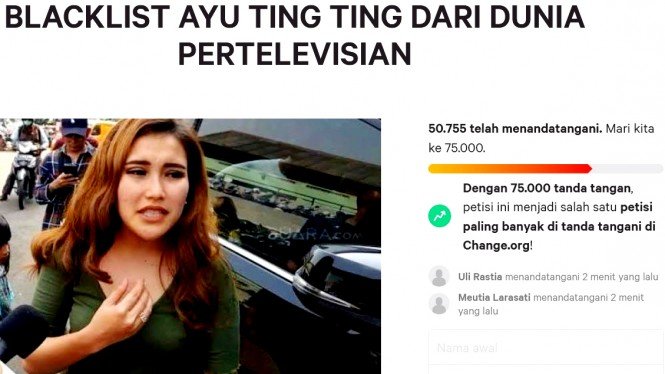 Sementara disaat Ayu Ting Ting curhat soal boikot, jumlah warganet yang menandatangani petisi itu di Change.org terus bertambah.