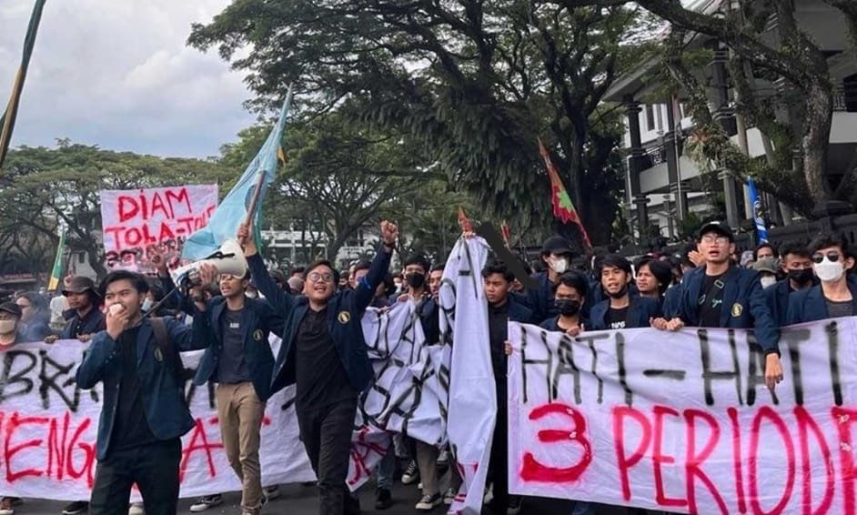Sedangkan, poin tuntutan yang mereka bawa, yaitu Penolakan Penundaan Pemilu 2024, Penolakan Tiga Periode Joko Widodo, Harga Minyak dan Sembako yang melambung drastis hingga harga BBM yang mulai melonjak. (Putut)
