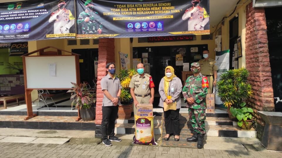 Jakarta – Kantor Cabang Badan Penyelenggara Jaminan Sosial Ketenagakerjaan (BPJAMSOSTEK) Jakarta Ceger berbagi sembako dengan warga terdampak Covid-19. Bantuan tersebut diserahkan ke Posko Gugus Tugas Percepatan Penangangan Covid-19 di Kantor Kelurahan Cilangkap, Jakarta Timur, Selasa (25/5/2021).