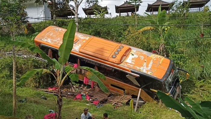 “Kendaraan bus membawa penumpang sebanyak 45 orang, dari guru dan pelajar dari salah satu SMP swasta yang ada di Surabaya yang sedang melaksanakan study tour di Bali. Untuk, penanganan dan olah TKP di-back up juga dari tim Traffic Accident Analisys (TTA) Ditlantas Polda Bali,” kata AKBP Ranefli, Sabtu (18/2) malam.