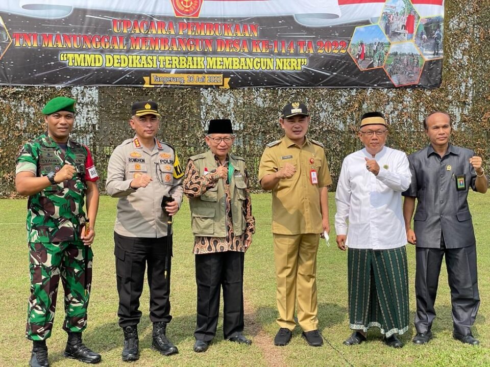 SPcom TIGARAKSA – Dandim 0510/Trs Letkol Arh Syarief SB bersama Wakil Bupati Tangerang, Mad Romli dan jajaran Forkopimda membuka kegiatan TNI Manunggal Membangun Desa (TMMD) ke-114 Kodim 0510/Trs Tahun 2022, di Desa Waliwis, Mekar Baru, Selasa (26/07/2022).