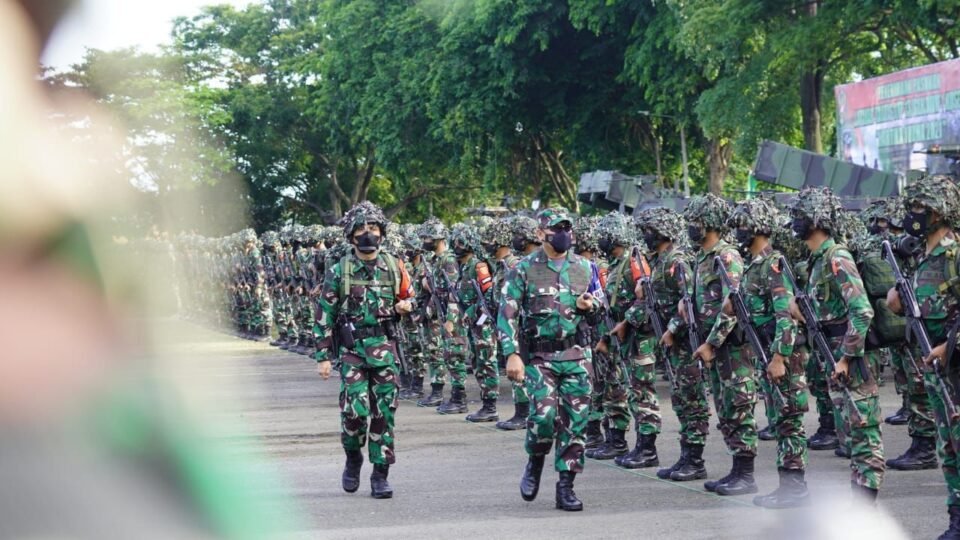 Dankodiklatad Letjen TNI AM. Putranto selaku Komandan Latihan Ancab BTP 13 Kartika Yudha memimpin Acara Penerimaan Pasukan yang diikuti oleh 2.953 orang prajurit pimpinan Komandan Brigif Raider-13/1/Kostrad Kolonel Inf Herry Purwanto, di Lapangan Saburai 043/Gatam, Kamis (4/11/2021)