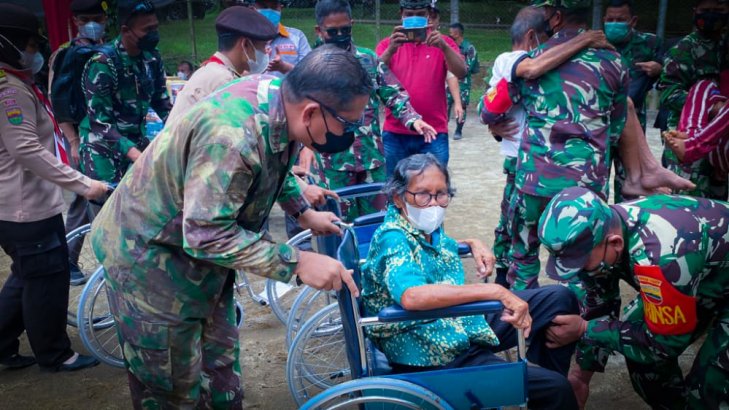 Didampingi Pangdam I/BB Mayjen TNI Hassanudin, Putranto mengendarai kendaraan 4×4 untuk bisa mencapai lokasi. Bantuan yang diberikan kepada masyarakat adalah vaksinasi Covid-19, 5 buah kursi roda dan 2.000 paket sembako.