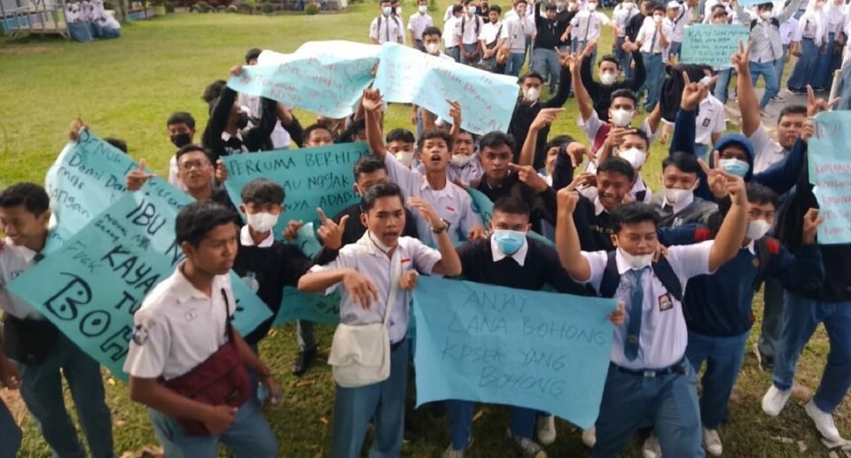 SPcom JAMBI – Puluhan siswa SMAN 3 Muarojambi mendatangi kantor Gubernur Jambi. Mereka meminta kepada pemerintah untuk mencopot kepala sekolah yang saat ini menjabat sebagai Kepala SMAN 3 Muarojambi.