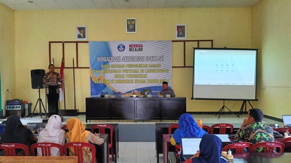 SPcom BENGKULU – Dinas Pendidikan (Dispendik) Bengkulu Utara menggelar Sosialisasi Akreditasi Sekolah bagi Satuan Pendidikan, di Gedung PGRI Arga Makmur, Kamis (15/8/2024).