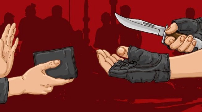 Sementara pelaku yang mengenakan jaket abu-abu dan bertopi berada di belakang rekannya sambil mengacungkan sebuah benda yang diduga senjata tajam (saham) untuk menakuti atau mengancam sang sopir.