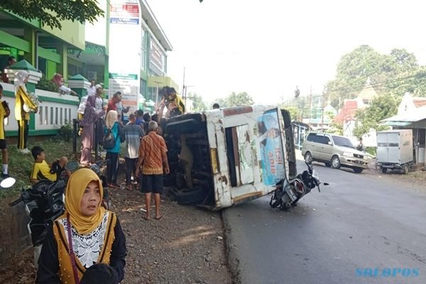 Geger! Bus Rombongan Siswa SD Terguling, Menimpa 2 Motor