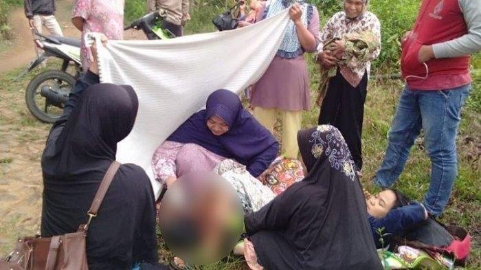 Peristiwa itu direkam kamera ponsel warga, terlihat beberapa orang membantu persalinan Dina. Dalam video juga digambarkan kondisi jalan yang masih tanah, di sekelilingnya juga tampak semak-semak seperti di hutan.