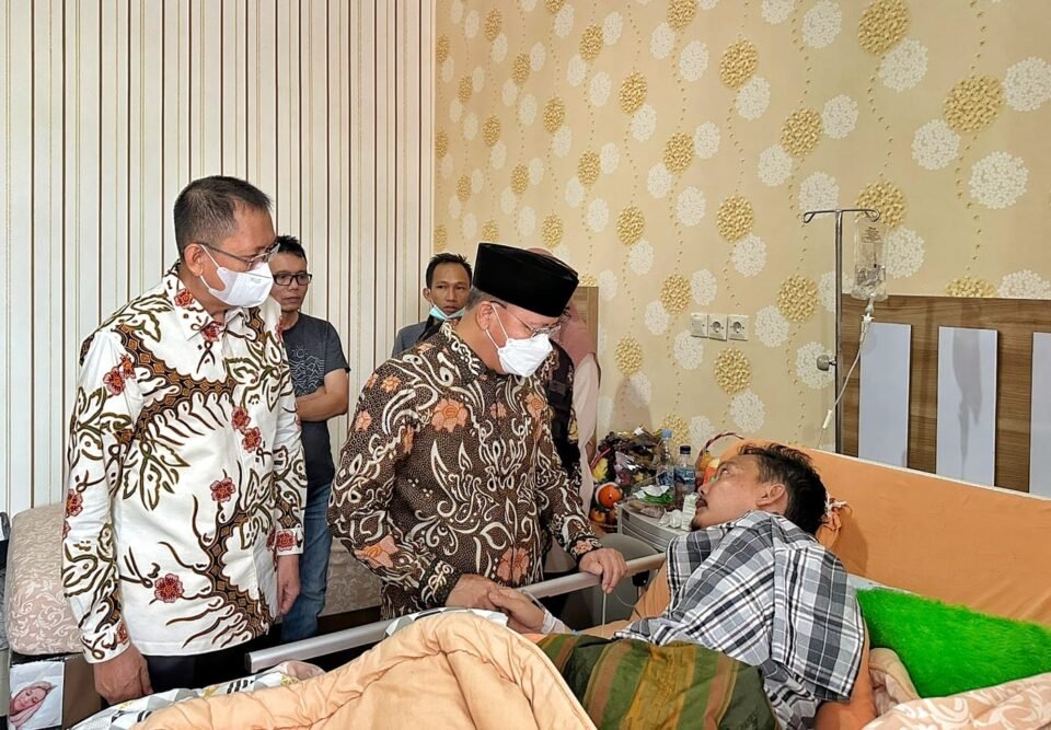 SPcom BENGKULU – Gubernur Bengkulu, Rohidin Mersyah menjenguk Pimpinan RMOL Bengkulu Rahimandani yang menjadi korban penembakan, di Rumah Sakit Raflesia, Kota Bengkulu, Sabtu (4/2/2023).