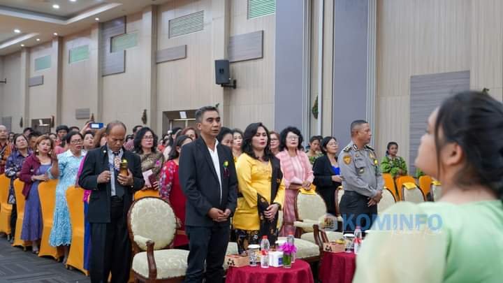 SPcom KARO – Wakil Bupati Karo, Theopilus Ginting bersama Ketua TP PKK Karo, Vera Rika Theopilus Ginting hadiri perayaan Natal Oikoumene Kabupaten Karo Tahun 2023, di Hotel Sinabung, Berastagi, Rabu (13/12/2023).