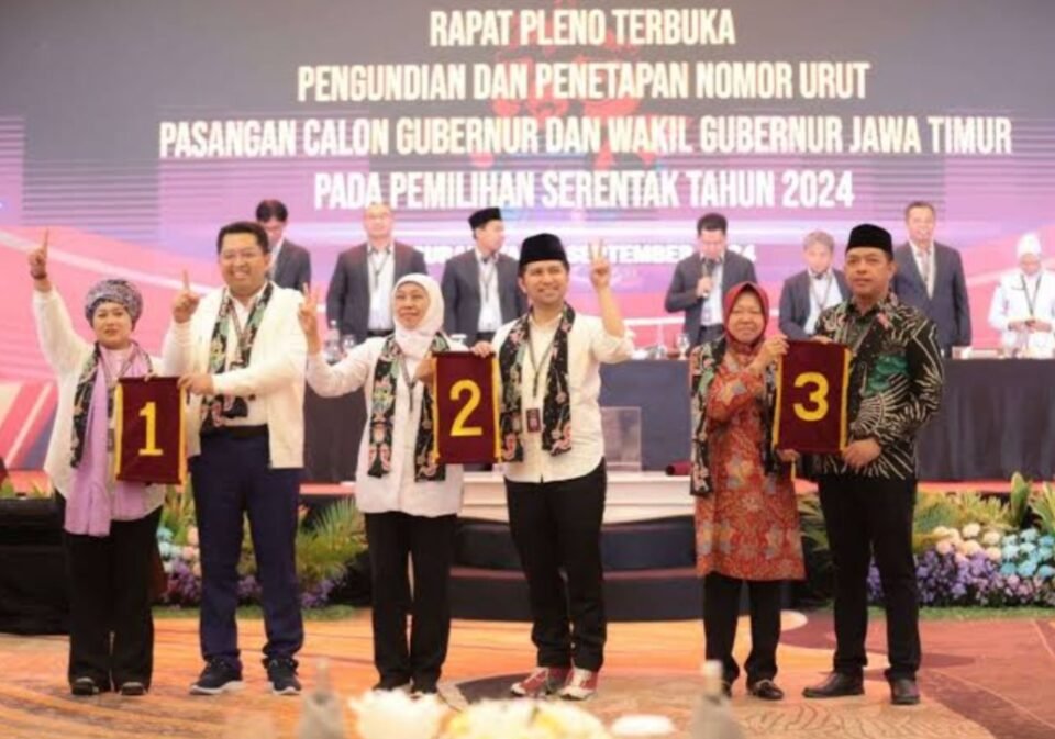 SPcom SURABAYA – Hasil hitung cepat (quick count) sementara Pemilihan Gubernur Jawa Timur (Pilgub Jatim) 2024 menunjukkan pasangan Khofifah Indar Parawansa dan Emil Elestianto Dardak Calon Gubernur dan Wakil Gubernur (Cagub-Cawagub) Jatim nomor urut 02, unggul atas dua pasangan lainnya.