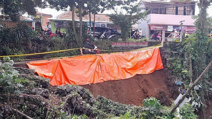 “Kemarin hari Ahad itu sekitar sore hari debit hujan cukup tinggi, begitu menjelang Magrib, karena air dari Jalan Raya Cilebut cukup deras kemudian air melimpas ke bawah, sehingga mengakibatkan turap di jembatan 1 longsor,” kata Camat Tanahsareal, Sahib Khan, Senin (12/9/2022).