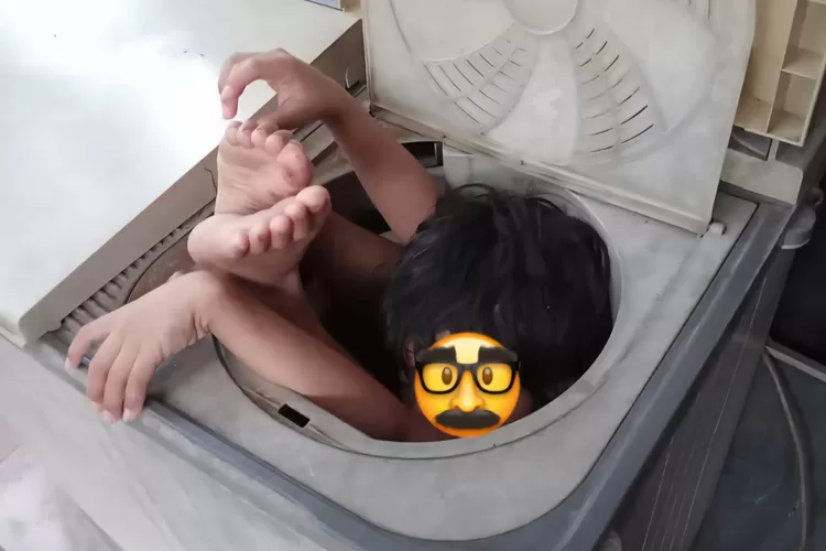 Tiba-tiba terdengar teriakan anaknya. Ketika dicek, ternyata sang anak sudah berada di dalam mesin pengering, dengan posisi tubuh terjepit—pantat masuk ke dalam, sementara tangan dan kaki terhimpit.