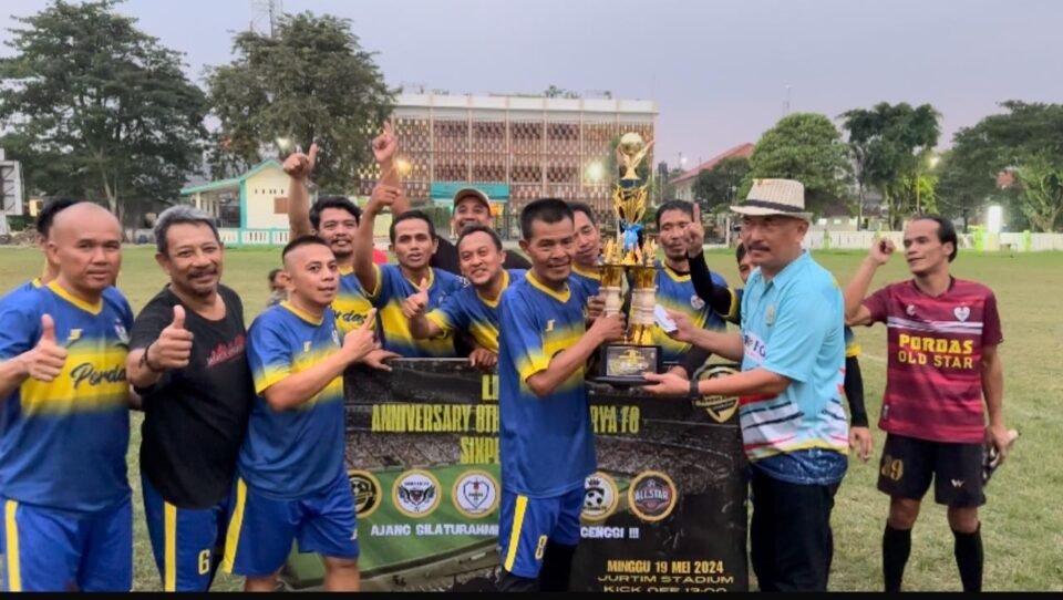 SPcom TANGSEL – Turnamen Sepakbola usia 40 plus digelar untuk memperingati HUT ke-8 Pondok Karya FC, di Lapangan Sepakbola Jurangmanggu Timur, Pondok Aren, Minggu (20/5/2024).