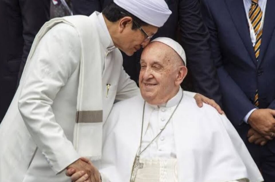 SPcom JAKARTA – Salah satu momen menarik saat Pemimpin tertinggi Gereja Katolik sedunia, Paus Fransiskus mengunjungi Masjid Istiqlal, Jakarta pada Kamis (5/9/2024), adalah Paus Fransiskus tampak terlihat sangat akrab dan dekat dengan Imam Besar Masjid Istiqlal Nasaruddin Umar. Terlihat Paus dan Nasaruddin Umar saling bersalaman saat hendak berpisah.