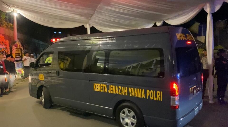 Jenazah Widi Astutik pun diantar dengan mobil Ambulan Polisi dari Mabes Polri dan mendapatkan pengawalan ketat .