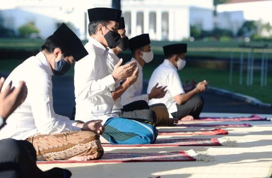SPcom YOGYAKARTA – Presiden Joko Widodo (Jokowi) melaksanakan shalat Idul Fitri di halaman Istana Kepresidenan Gedung Agung Yogyakarta, bersama keluarganya
