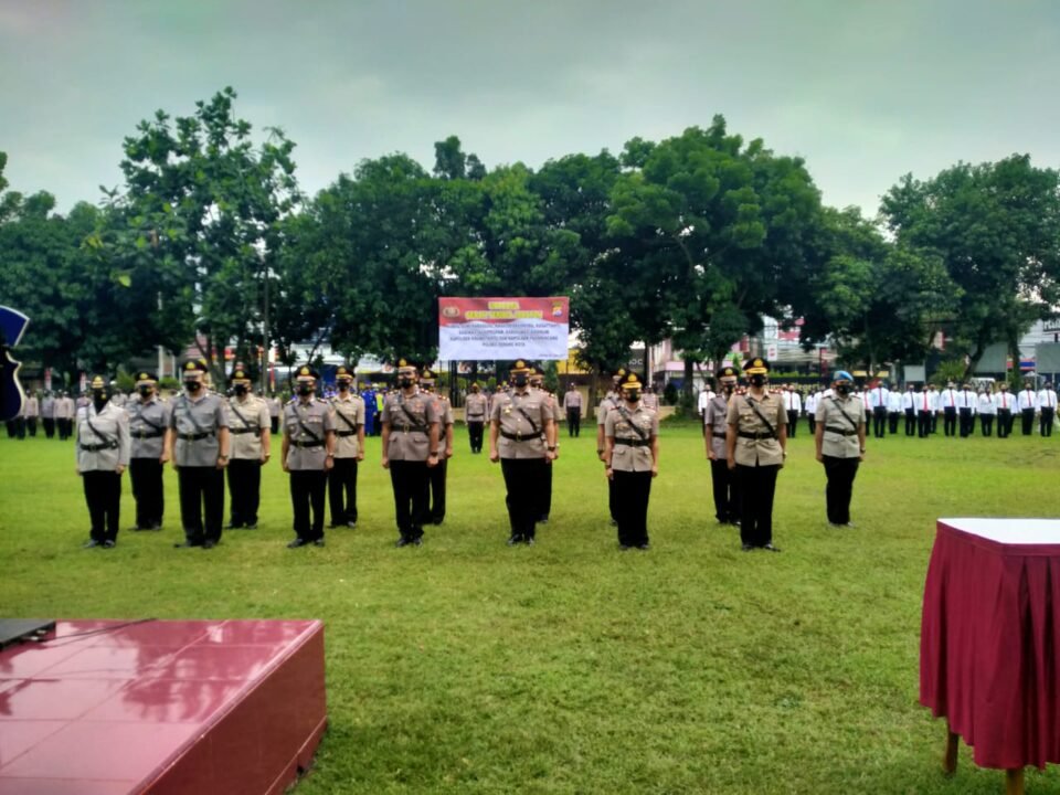 SPcom Kota Serang – Tujuh Pejabat Utama dan dua Kapolsek jajaran Polres Serang Kota diserahterimakan dan dikukuhkan, langsung oleh Kapolres Serang Kota, AKBP Yunus Hadith Pranoto, S.IK., M.Si., di lapangan hijau Mapolres Serang Kota, pada Kamis (3/6/2021).