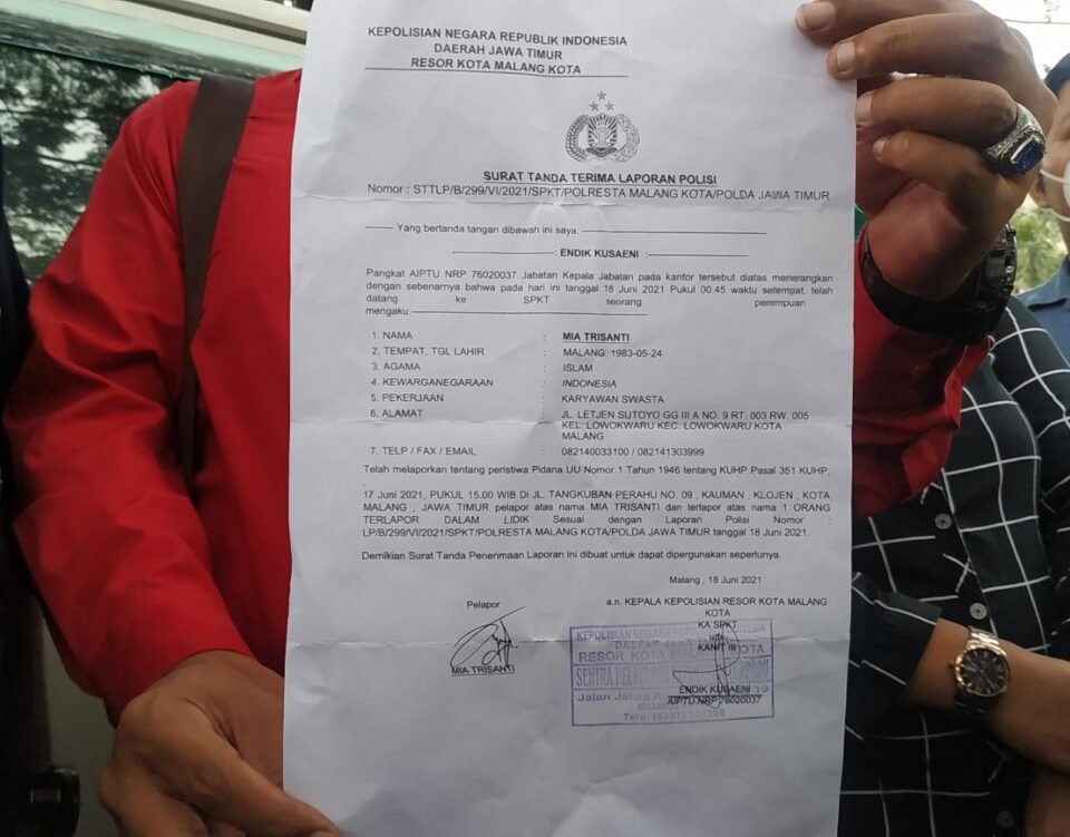 Apalagi, lanjut dia adanya keanehan dalam surat bukti di Surat Tanda Terima Laporan Polisi tertulis terlapor atas nama 1 Orang Terlapor Dalam Lidik sesuai dengan Laporan Polisi Nomor : LP/B/2296/VI/2021/SPKT/POLRESTA MALANG KOTA/POLDA JAWA TIMUR tanggal 18 Juni 2021.