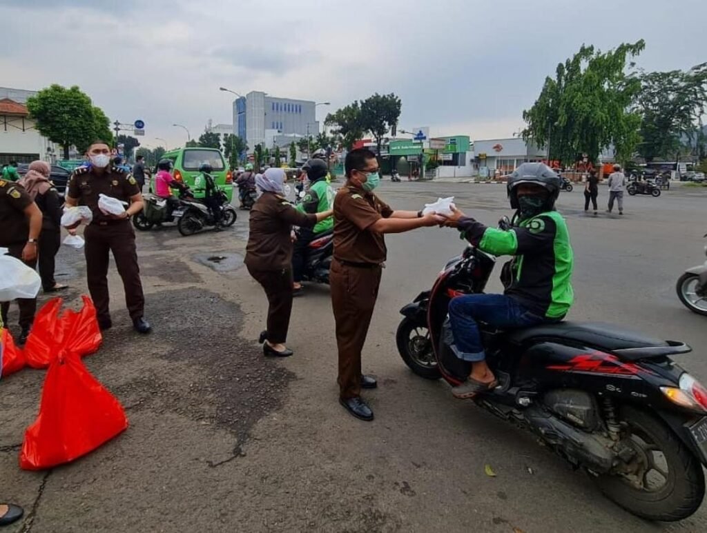 SPcom TANGSEL – Kejaksaan Negeri (Kejari) Kota Tangsel membagikan makanan untuk berbuka puasa (Takjil) bagi ratusan pengguna Jalan Letnan Sutopo, Rawa Buntu, Serpong.