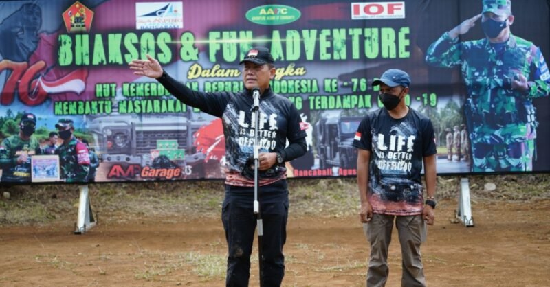 SPcom BANDUNG – Kodiklatad berkolaborasi dengan Glamping Lake Side dan komunitas otomotif menggelar bakti sosial (Baksos) di Rancabali, Kabupaten Bandung, Jawa Barat, Minggu (22/8/2021).