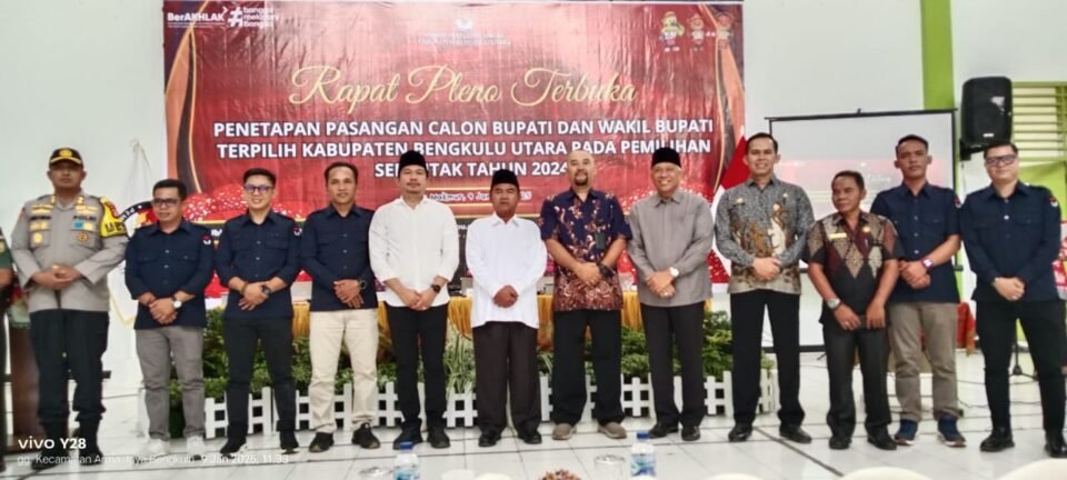 SPcom BENGKULU – Komisi Pemilihan Umum (KPU) Kabupaten Bengkulu Utara menggelar Rapat Pleno Terbuka Penetapan Pasangan Calon Terpilih dalam Pemilihan Bupati dan Wakil Bupati Bengkulu Utara Tahun 2024, Kamis (9/1/2025).