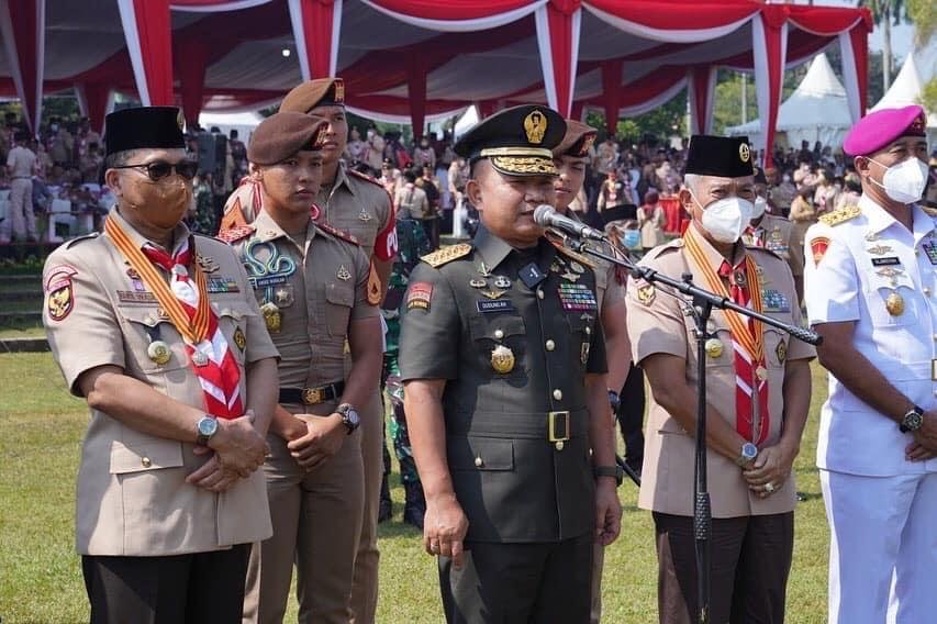 SPcom JAKARTA – Kepala Staf Angkatan Darat (KSAD) Jenderal TNI Dudung Abdurachman menghadiri pembukaan Jambore Nasional (Jamnas) XI Pramuka, di Buperta Cibubur, Jakarta Timur, Minggu (14/8/2022).