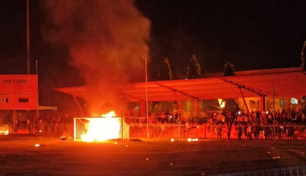 “Tadi para penonton kecewa karena lampu stadion mati. Setelah diumumkan batal, massa membakar fasilitas yang ada di stadion,” kata penonton bernama Azis Awee, Selasa (6/9/2022).