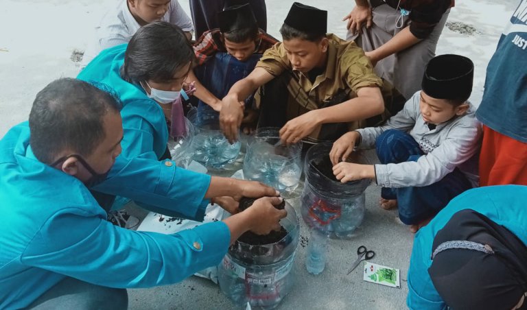 “Program yang kita berikan adalah pemanfaatan galon dan botol plastik bekas air mineral untuk media tanam,” ujarnya.