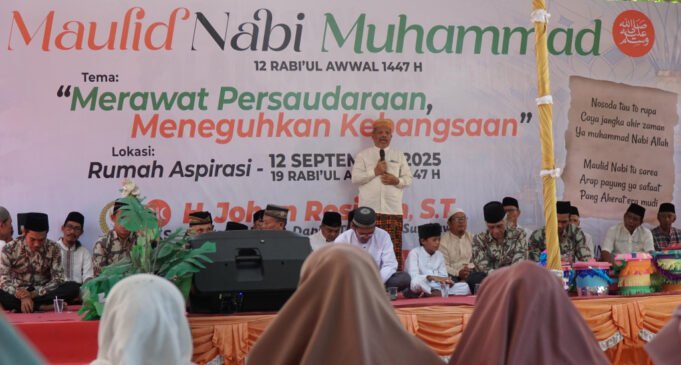 SPcom SUMBAWA – Peringatan Maulid Nabi Muhammad SAW di Rumah Aspirasi Johan Rosihan di Sumbawa, Nusa Tenggara Barat (NTB), tidak hanya menjadi ajang keagamaan, tetapi juga momentum untuk meneguhkan iman dan memperkokoh persatuan bangsa. Acara ini dihadiri oleh ratusan jamaah pada Jumat (12/9/2025).