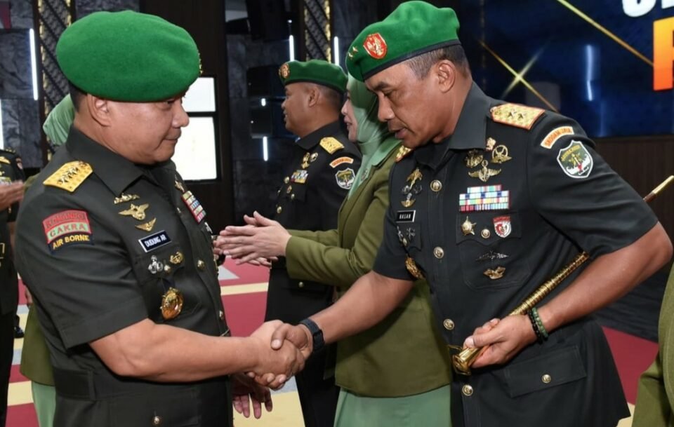 SPcom JAKARTA – Kepala Staf Angkatan Darat (KSAD) Jenderal TNI Dudung Abdurachman memimpin serah terima jabatan dua pejabat Pangdam di Aula Jenderal Besar A.H Nasution, Mabesad, Jakarta, Jumat (24/3/2023).