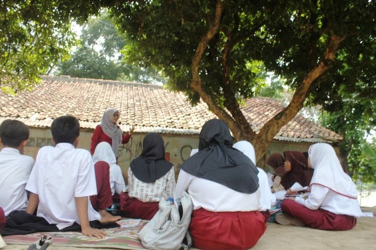 “Kadang di teras, di halaman, di bawah pohon. Kalau musim hujan di kelas semua, jadi satu meja bisa diisi oleh empat siswa,” kata Karna. (SP)