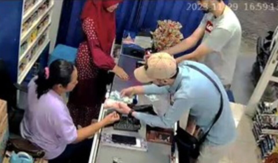 Meski mengenakan topi, wajah mereka terekam jelas. Awalnya tidak ada gelagat mencurigakan dari kedua WNA tersebut hingga mereka membayar dua minumannya lalu kembali ke kasir berpura-pura menukarkan uang.