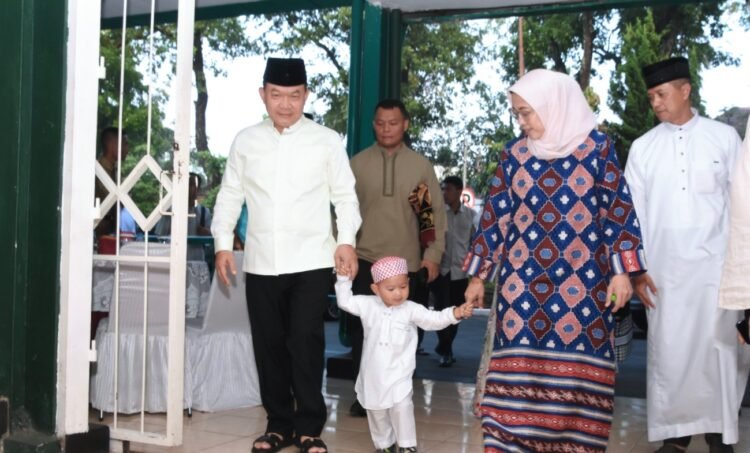 Jendral bintang empat ini bersama keluarga menunaikan salat idul fitri di Lapangan Stadion Siliwangi, Bandung, Jawa Barat. Salat ied dan ceramah khatib berjalan khidmat.