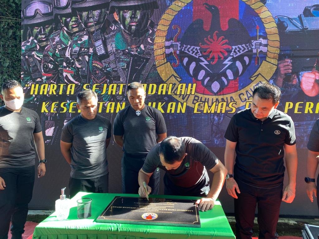 SPcom JAKARTA – Pangdam Jaya Mayjen TNI Dudung Abdurachman meresmikan lapangan tenis Batalyon Arhanud 10/ABC Gagak Hitam, di Pesanggrahan, Jakarta Selatan, Senin (12/4/2021).