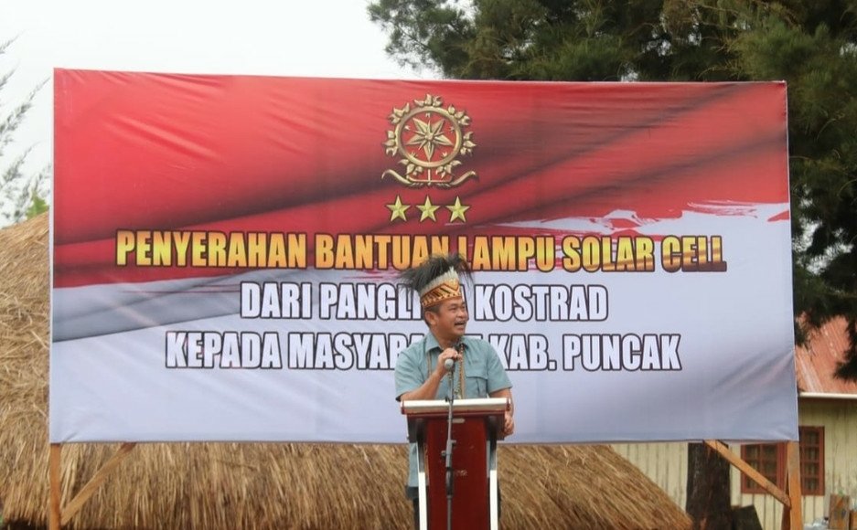 Kemudian Maturi, secara simbolis menyerahkan bantuan lampu solar cell untuk membantu masyarakat guna penerangan di wilayah Ilaga.