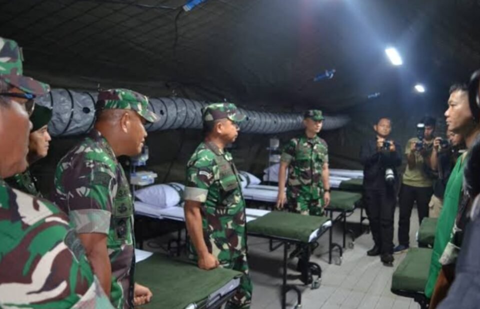 SPcom BOGOR – Panglima TNI Jenderal TNI Agus Subiyanto meninjau kesiapan Rumah Sakit Lapangan (Rumkitlap) yang digelar di Yonkes 1/1 Kostrad, Bogor. Hal itu merupakan bagian dari rangkaian penyiapan Joint Medical Humanitarian Operations (Operasi Kemanusiaan Gabungan Bidang Kesehatan) di Gaza, Palestina.