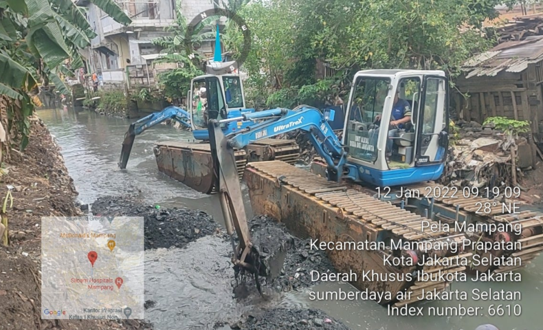 Dudi mencontohkan, Dinas SDA Provinsi DKI Jakarta telah mengerjakan pengerukan Kali Mampang secara berkala setiap tahun, salah satunya pekerjaan pengerukan dilakukan pada 2021 dan dilanjutkan sejak awal 2022 menggunakan alat berat. Selanjutnya, perbaikan turap Kali Krukut sudah dilakukan pada tahun 2018 hingga tahun 2021.