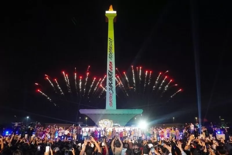 Puncak acara HUT DKI Jakarta ke-497 di silang Monas, Jakarta Pusat, Sabtu 22 Juni 2024 malam, berlangsung meriah.