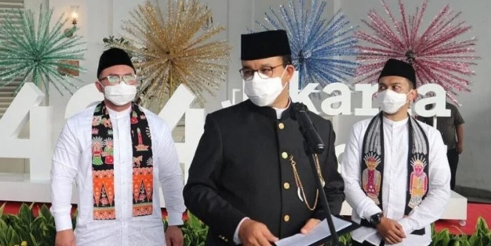 Gubernur DKI Jakarta, Anies Baswedan yang memimpin upacara peringatan HUT DKI Jakarta ke-494 di Balai Kota Jakarta pada Selasa pagi ini secara serentak, dihadiri pejabat langsung dan secara virtual.