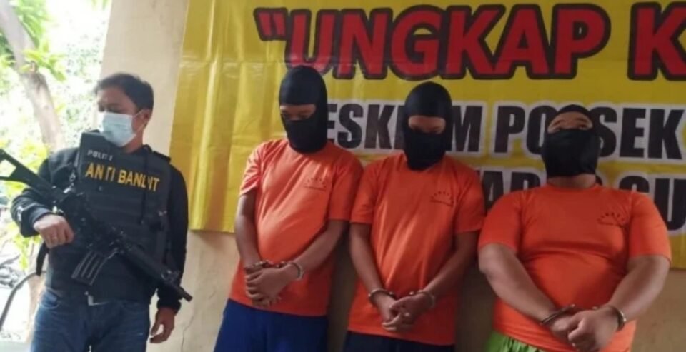 SPcom SURABAYA – FCP (20), GDR (23), dan VMD (27) merupakan tiga pemuda asal Surabaya, Jawa Timur, yang ditangkap aparat Kepolisian Sektor Gubeng karena diduga telah menyetubuhi secara paksa seorang terapis berinisial NH (31) hingga pingsan.