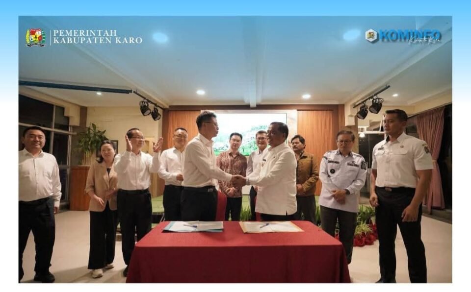 SPcom KARO – Bupati Karo Antonius Ginting menerima kunjungan delegasi Pemerintah Distrik Jinning, Kota Kunming, Republik Rakyat Tiongkok, di Kantor Bupati Karo, Kabanjahe, Rabu (26/11/2025).