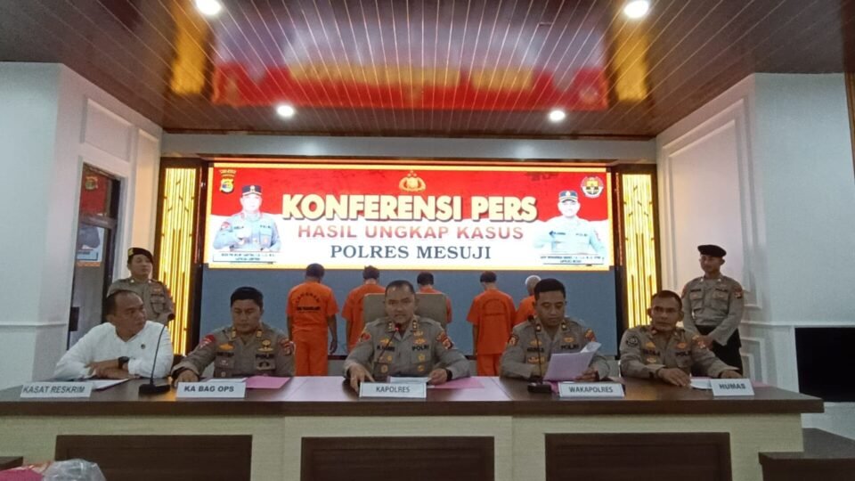 SPcom MESUJI – Polres Mesuji, Lampung, menangkap lima pencurian buah sawit di perkebunan PT. Prima Alumga, Desa Sungai Cambai, Mesuji Timur.
