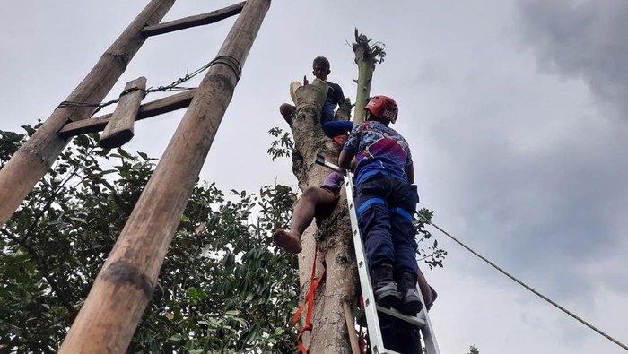 Warga kemudian melaporkan ke polisi. Lalu kami koordinasi dengan Damkar Pemkab Blitar mengevakuasi korban dari atas pohon setinggi 10 meter itu,” kata Kasi Humas Polres Blitar, Iptu Udiyono, Sabtu (1/1/2022).