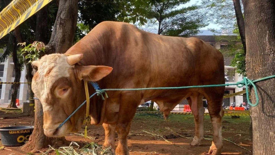 “Sapi Pak Prabowo ini warna hitam beratnya 1,267 ton jenis brangus. Asalnya dari Kemayoran. Sedangkan untuk sapi mas Gibran beratnya 1 ton warna cokelat-putih jenis simental dari, Cibinong, Bogor, Jabar. Tibanya pagi punya Pak Prabowo, yang Mas Gibran siang jam 13.40,” ungkap Ahmad Fauzi tim penerimaan hewan kurban Masjid Istiqlal.
